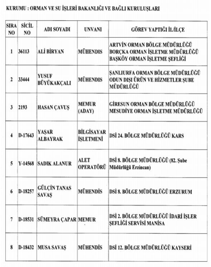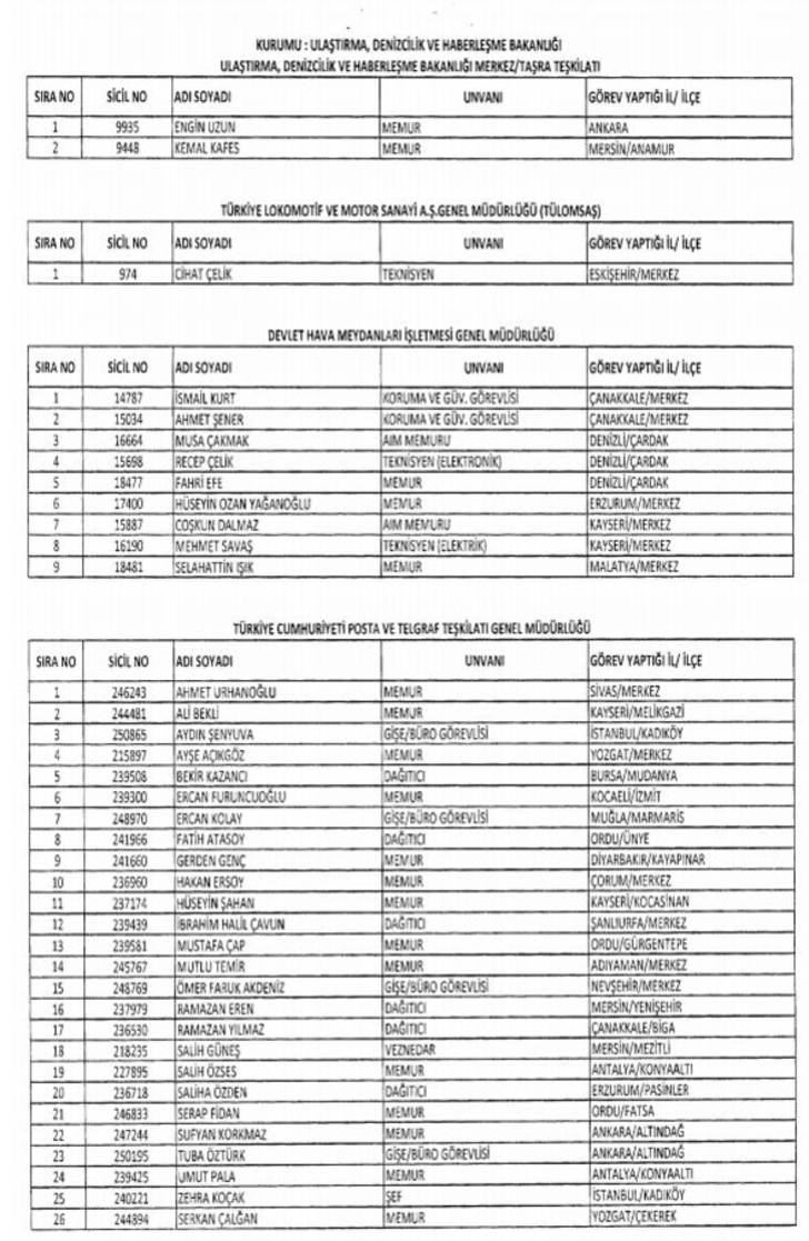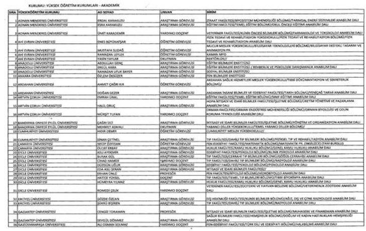 İşte KHK ile kamudan ihraç edilenlerin listesi