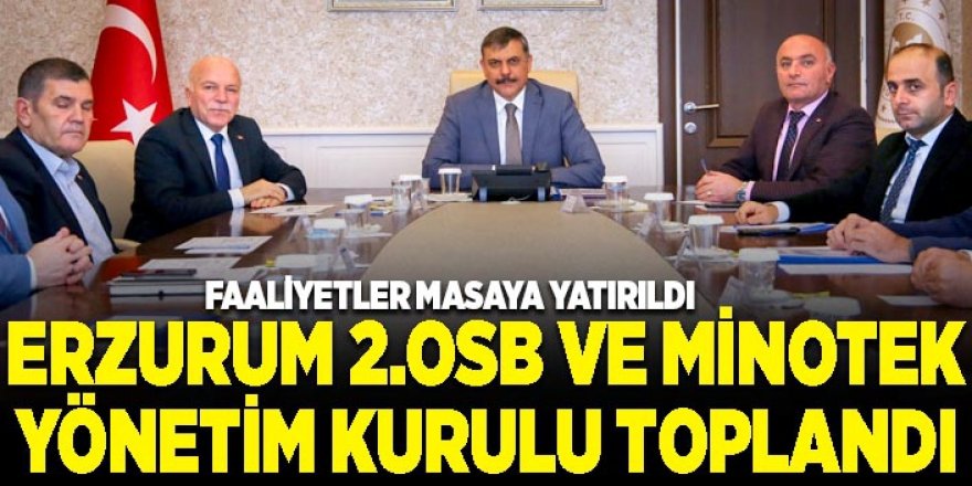 Erzurum 2. Organize Sanayi Bölgesi (2. OSB) ve Mobilya İnovasyon Merkezi’nin (MİNOTEK) ortak yönetim kurulu toplantısı, Vali Mustafa Çiftçi başkanlığında gerçekleştirildi.