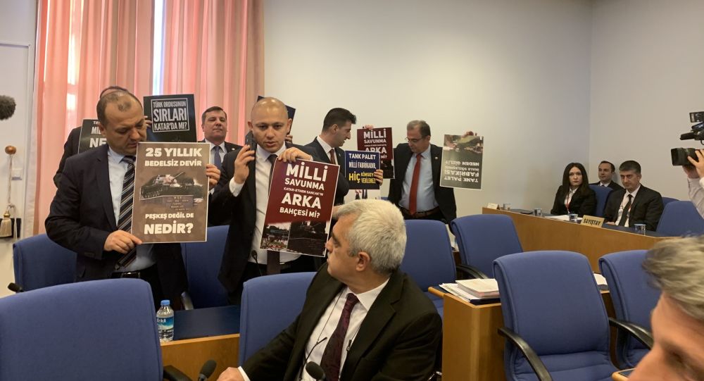 TBMM Plan ve Bütçe Komisyonu’nda Milli Savunma Bakanlığı’nın bütçe görüşmeleri, CHP’nin Sakarya’daki tank-palet fabrikasının Katar ortaklığındaki şirkete devrini afişlerle protesto etmesiyle başladı.
