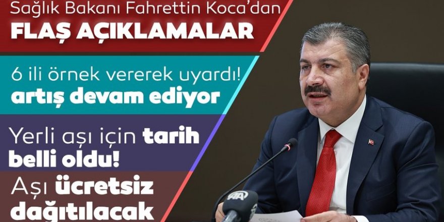Bakan Koca, "İstanbul, Ankara, İzmir, Bursa, Kocaeli, Konya, Sivas, Kahramanmaraş ve Gaziantep'te vaka artışı düşmeye başladı." diye konuştu.