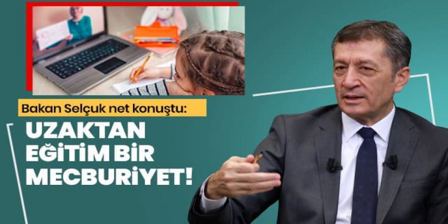 Milli Eğitim Bakanı Selçuk, uzaktan eğitime ilişkin" "Bu bir mecburiyet. Dünyada koşullar ne olursa olsun, bizim ödevimiz bunun tedbirini almak." dedi.