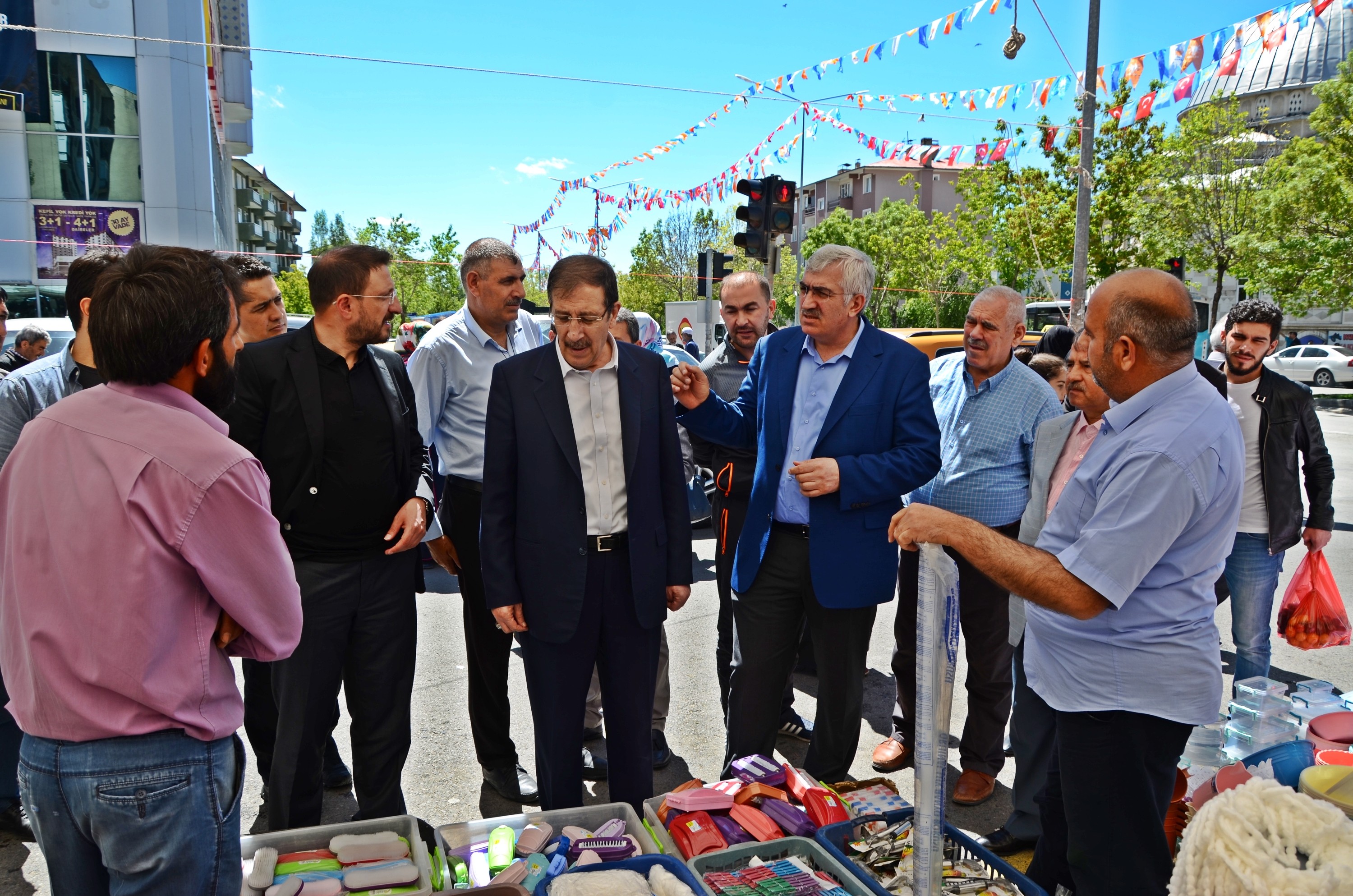 Pazar esnafını ziyaretine Ak Parti Palandöken İlçe Başkanı Haktan Ömeroğlu da yer alırken Erzurum Seyyar Pazarcılar Esnaf Derneği Başkanı Abdulhadi Özataş ise eşlik etti.