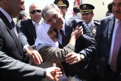 Erzurum Güncel-Ardahan’da Valilik ziyareti sonrası Merkez Camisi'nde cuma namazını kılan Gül, halkın yoğun ilgisiyle karşılaştı. Beraberindeki Bakan Hayati Yazıcı ile birlikte vatandaşlarla biraraya gelen Cumhurbaşkanı Gül, sohbet ederek, insanların sorunlarını dinledi. Merkez Camisi'nden Ardahan Belediyesi'ne kadar yürüyen Gül’e, 75 yaşındaki Hediye Şero nine tarafından sepet içerisinde köy yumurtası ve bal hediye edildi. Nine daha sonra Türk bayrağını göğsünden çıkarıp Cumhurbaşkanı Gül’le birlikte fotoğraf çektirdi. Cumhurbaşkanı Gül, Ardahan Belediyesi'ni ziyaret ederek Başkan Faruk Köksoy’dan brifing aldı. Öte yandan, Cumhurbaşkanı Gül’e ulaşmaya çalışan vatandaşlar izdihama neden oldu. Bu sırada ayağı takılıp dengesini kaybeden bir vatandaş Cumhurbaşkanı Gül’ün üzerine düşmekten son anda korumaların sayesinde kurtuldu. “ÇOCUKLARIMIZA DAHA GÜZEL BİR TÜRKİYE VE ARDAHAN BIRAKMAK İÇİN UĞRAŞIYORUZ” Cumhurbaşkanı Gül, yol boyunca bütün çocukların ellerinde karneler gördüğünü belirterek şöyle konuştu: “Hepsinin gözlerinden öpüyorum. Onlara başarılar diliyorum. Biliyorsunuz okullarda küçükken hepimizin okuduğu ve şimdi de bütün çocukların okuduğu şiirlerde Edirne’den Ardahan’a kadar bu güzel vatandan bahsederiz. Türkiye’nin, bu güzel vatanımızın Serhat şehirlerinden birisi Doğu’da Ardahan’dır, sizlersiniz. Sizler burayı bekliyorsunuz. Sizler burada yaşıyorsunuz, sizler bu toprakları şenlendiriyorsunuz. Bizlerin, hepimizin, bütün devlet görevlilerinin, bütün kamu görevlilerinin, hükümetin, yerel yöneticilerin, herkesin var oluşu sizlere hizmet içindir. Sizlere hizmet etmek, sizlerin geleceğini daha iyi iyileştirmek, çocuklarımıza daha güzel Türkiye bırakmak, daha güzel Ardahan bırakmak, onlara daha iyi eğitim, daha iyi sağlık bütün bunlar için uğraşıyoruz. Ve sizler de görüyorsunuz ki her geçen gün, her geçen yıl Türkiye daha güzelleşiyor, daha zenginleşiyor bununla Ardahan’da aynı şekilde daha çok gelişiyor. Bu çerçevede Çıldır Gümrük Kapısı’nın ihalesinin yapıldığını eminim ki biliyorsunuzdur. Komşularla ilişkileri iyi tutmak, onlarla kapılarımız olur, görüşür, yasal yollarla ticaret yaparsak tabii ki iyi olur. Onun için işte bütün bu tedbirler de alınıyor. Sizler bizim değerli vatandaşlarımız, kıymetli vatandaşlarımız olarak hepinizin başımızın üstünde yeri vardır. Hepinize hizmet ibadettir. Hepinize hizmet çok büyük bir onurdur. Bilin ki bunun için varız”.