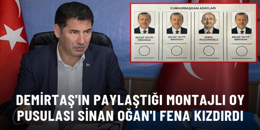 ATA ittifakının cumhurbaşkanı adayı Sinan Oğan, Eski HDP Eş Genel Başkanı Selahattin Demirtaş'ın Cumhurbaşkanlığı seçiminde yarışacak dört adayın bulunduğu oy pusulasının montajlanmış bir halini paylaşmasına tepki gösterdi.