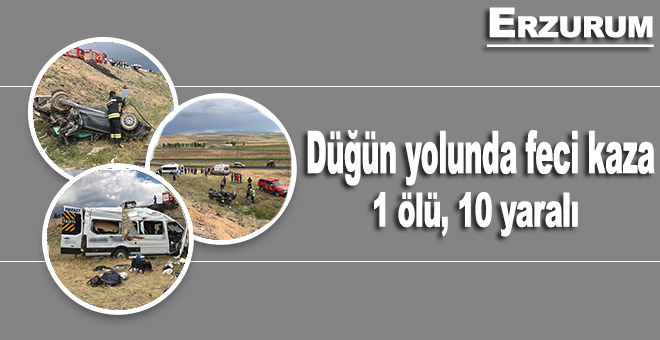 Samsun’dan Kars’a düğüne gidenlerin içinde bulunduğu minibüs Erzurum’un Köprüköy ilçesinde kaza yaptı. İlk belirlemelere göre 1 kişi öldü, 10 kişi yaralandı.