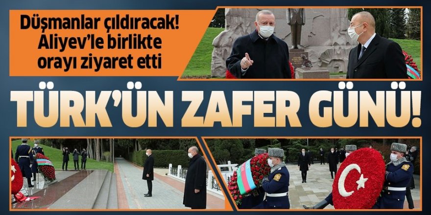 Cumhurbaşkanı Recep Tayyip Erdoğan, Azerbaycan'ın milli lideri Haydar Aliyev'in kabri ile Türk ve Azerbaycan şehitliklerini ziyaret etti. Erdoğan daha sonra Bakü'de zafer geçidi törenine katılacak.