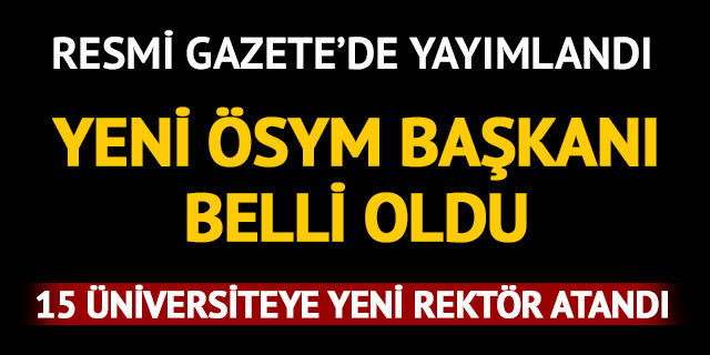 Cumhurbaşkanı Recep Tayyip Erdoğan'ın 15 üniversiteye yaptığı rektör atamaları Resmi Gazete'de yayımlandı. Ölçme, Seçme ve Yerleştirme Merkezi (ÖSYM) Başkanlığı'na Prof. Dr. Halis Aygün getirildi.