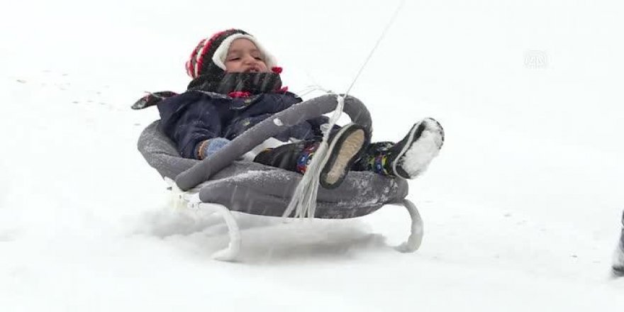 Kar yağışını fırsata çeviren bazı aileler kar topu oynayıp kızakla kayarak eğlenceli anlar yaşadı.