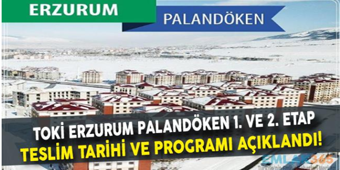 Başbakanlık Toplu Konut İdaresi Başkanlığı (TOKİ) tarafından hayata geçirilen Erzurum Palandöken Toki konut teslimleri 1 Nisan - 3 Mayıs 2019 tarihlerinde yapılacak.