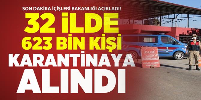 Ülkemizde koronavirüs salgını sürecinde; bugün itibarıyla 68 ilimizde, 5 ilçe (3 İlçe 2 İlçe Merkezi), 24 belde, 354 köy, 352 mahalle, 53 mezra olmak üzere toplam 788 yerleşim yerinde, 623.766 kişi karantina altına alındı. "