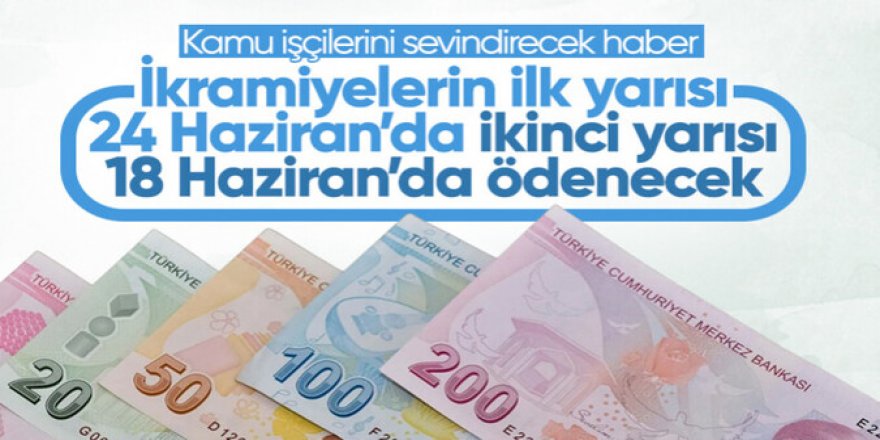 Kamuda çalışan işçilere bu yıl verilmesi gereken ikramiyenin ilk yarısı 23 Haziran'da, ikinci yarısı ise 18 Aralık'ta ödenecek.