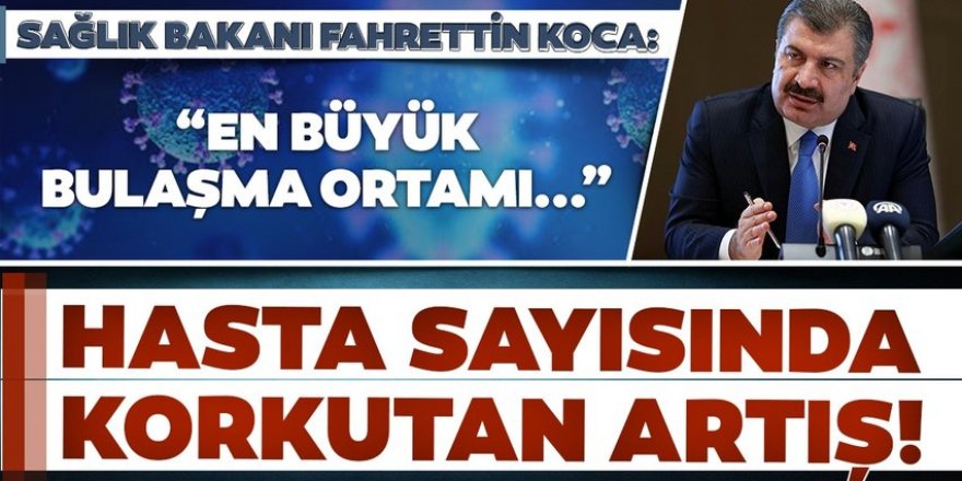 Sağlık Bakanı Fahrettin Koca:Bugün tespit edilen 6.903 yeni hasta var. Ağır hasta sayısı da aktif hasta sayısı da artmaya devam ediyor. Bugünlerde en büyük bulaşma ortamı kapalı ve kalabalık mekanlar. Kapalı ortamlarda kalabalık içinde bulunmayın. Kendinizi ve sevdiklerinizi koruyun.