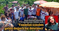 Erzurum Güncel- Akciğer hastalığından 33 yaşında hayatını kaybeden Kazım Koyuncu'nun Yeşilköy Köyü'ndeki kabri başında anma töreni düzenlendi. Koyuncu'nun yakınları, sevenleri ve bir grup Trabzonspor taraftarının katıldığı anma töreninde konuşan Hasan Bilgin, ünlü sanatçıyı 2005 yılında kaybettiklerini hatırlattı ve şunları söyledi: "8 yıl önce içimde oluşan burukluk, her geçen yıl artarak devam ediyor. Kazım, insan gibi insan, adam gibi adam, sosyal yaşamın içinden gelen değerli bir devrimcidir. Kazım Koyuncu'yu müzisyenliğinin yanı sıra devrimci olarak da anmamız lazım." Tören, Koyuncu anısına saygı duruşunda bulunulması ve mezarına çiçek bırakılmasının ardından sona erdi.