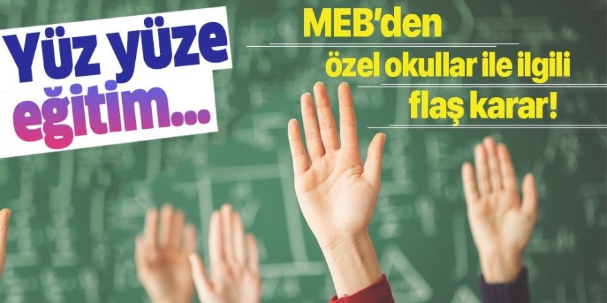 Milli Eğitim Bakanlığı (MEB), özel okullarda, resmi okullardaki uygulamaların dışında hiçbir şekilde yüz yüze eğitim veya herhangi bir etkinlik yapılmayacağına ilişkin illere yazı gönderdi.