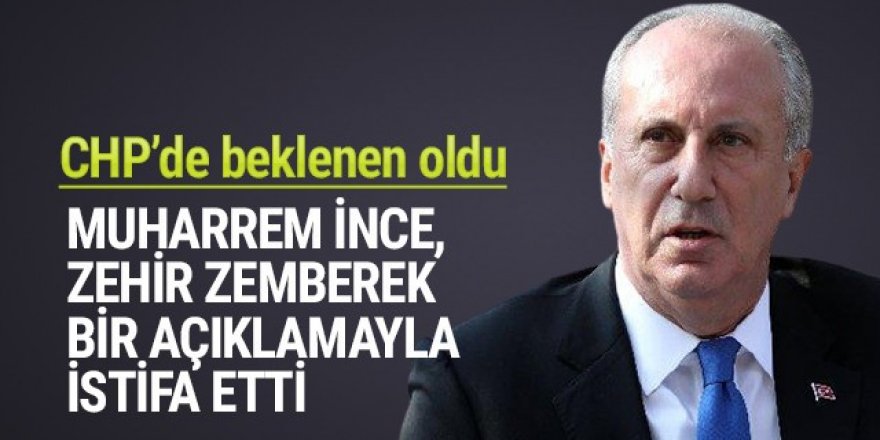 Yeni parti kurmaya hazırlanan CHP'li Muharrem İnce, düzenlediği basın toplantısında partisinden istifa ettiğini açıkladı. İnce, CHP'ye sert eleştirilerde bulundu.