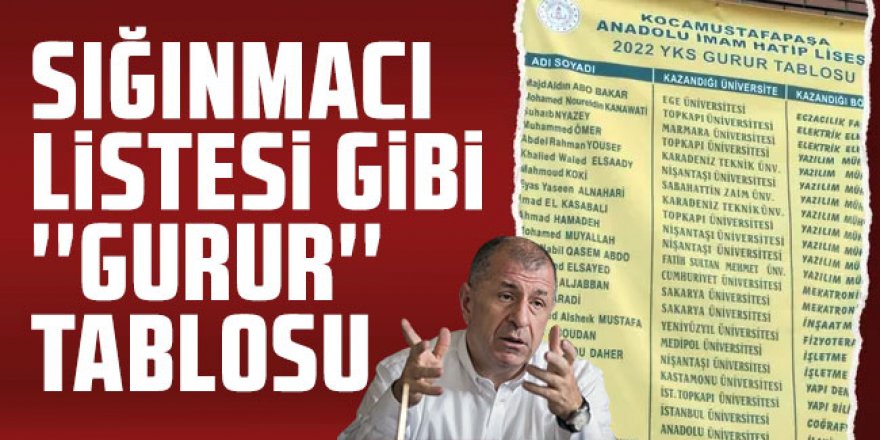 Zafer Partisi Genel Başkanı Ümit Özdağ, sosyal medya hesabından bir lisenin "gurur" tablosunu paylaştı. Listedeki isimlerin çoğunun yabancı uyruklu olduğunu gören Özdağ, sinirlerine hakim olamadı.