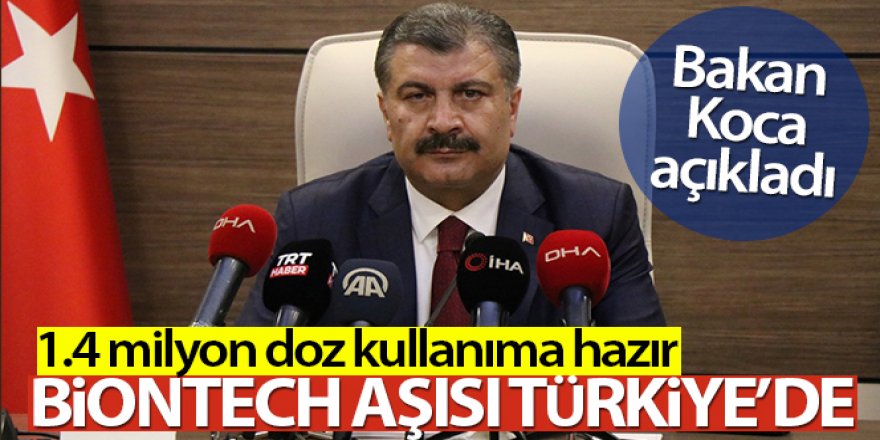 Sağlık Bakanı Fahrettin Koca, Biontech aşısının yaklaşık 1.4 milyon doz kullanıma hazır olarak ulaştığını bildirdi.