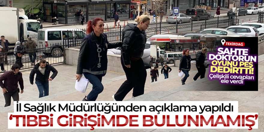 Tekirdağ İl Sağlık Müdürlüğü, sahte doktor Ayşem Özkiraz ile ilgili açıklama yaptı. Yapılan açıklamada kendisini doktor olarak tanıtan kişinin herhangi bir tıbbi girişimde bulunmadığı kaydedildi.