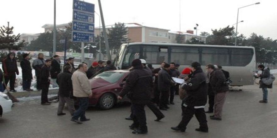 Erzurum Güncel - Erzurum'da kar yağışı sonrasında trafik kazalarında artış yaşanırken, Çat kavşağında özel halk otobüsüyle, otomobilin çarpışması sonucu 5 kişi yaralandı. Edinilen bilgiye göre kaza, Çat kavşağında bugün saat 16.15 sıralarında meydana geldi. Çağlar Gedikli idaresindeki 25 LT 168 plakalı otomobil ile Fatih Güler yönetimindeki 25 HO 103 plakalı Şükrüpaşa- Hilalkent hattına sefer yapan özel halk otobüsü, buzlanan yolda kafa kafaya çarpıştı. Kazada otobüs içerisindeki 4 yolcu ile otomobil sürücüsü yaralandı. Yaralılar kaza yerine sevk edilen ambulanslarla Erzurum Bölge Eğitim Araştırma Hastanesi'ne kaldırıldı. Yaralıların hayati tehlikelerinin bulunmadığı bildirildi. Hurdaya dönen iki araç çekici vasıtasıyla kaza yerinden kaldırılarak yol ulaşıma açıldı.2012-01-30 17:44:38