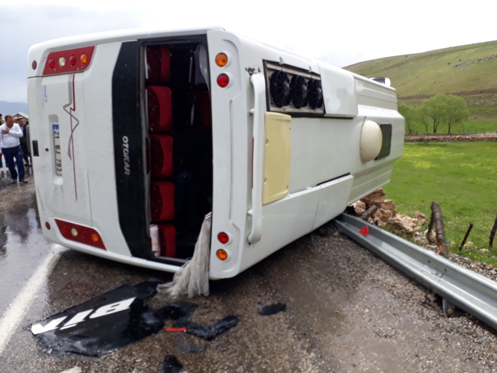 Bingöl'de yolcu midibüsü, yağış nedeniyle kayganlaşan yolda sürücüsünün direksiyon hakimiyetini kaybetmesi sonucu devrildi. 22 kişi yaralandı.