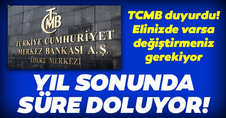 Merkez Bankası, Yeni Türk Lirası banknotları değiştirmek için son günün 31 Aralık 2019 olduğunu duyurdu.
