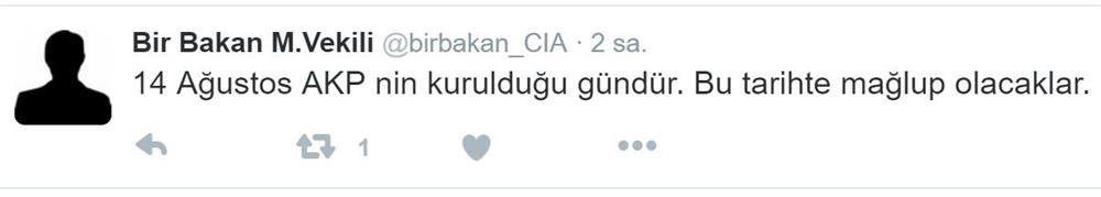 14 Ağustos rastgele seçilmiş bir tarih değil. Bu tarih AK Parti'nin kuruluş tarihi. 14 Ağustos 2001 tarihinde AK Parti kurulmuştu. FETö yandaşı hesaplarda da bu noktaya vurgu yapılıyor, aşağıdaki twit de bunun bir örneği;