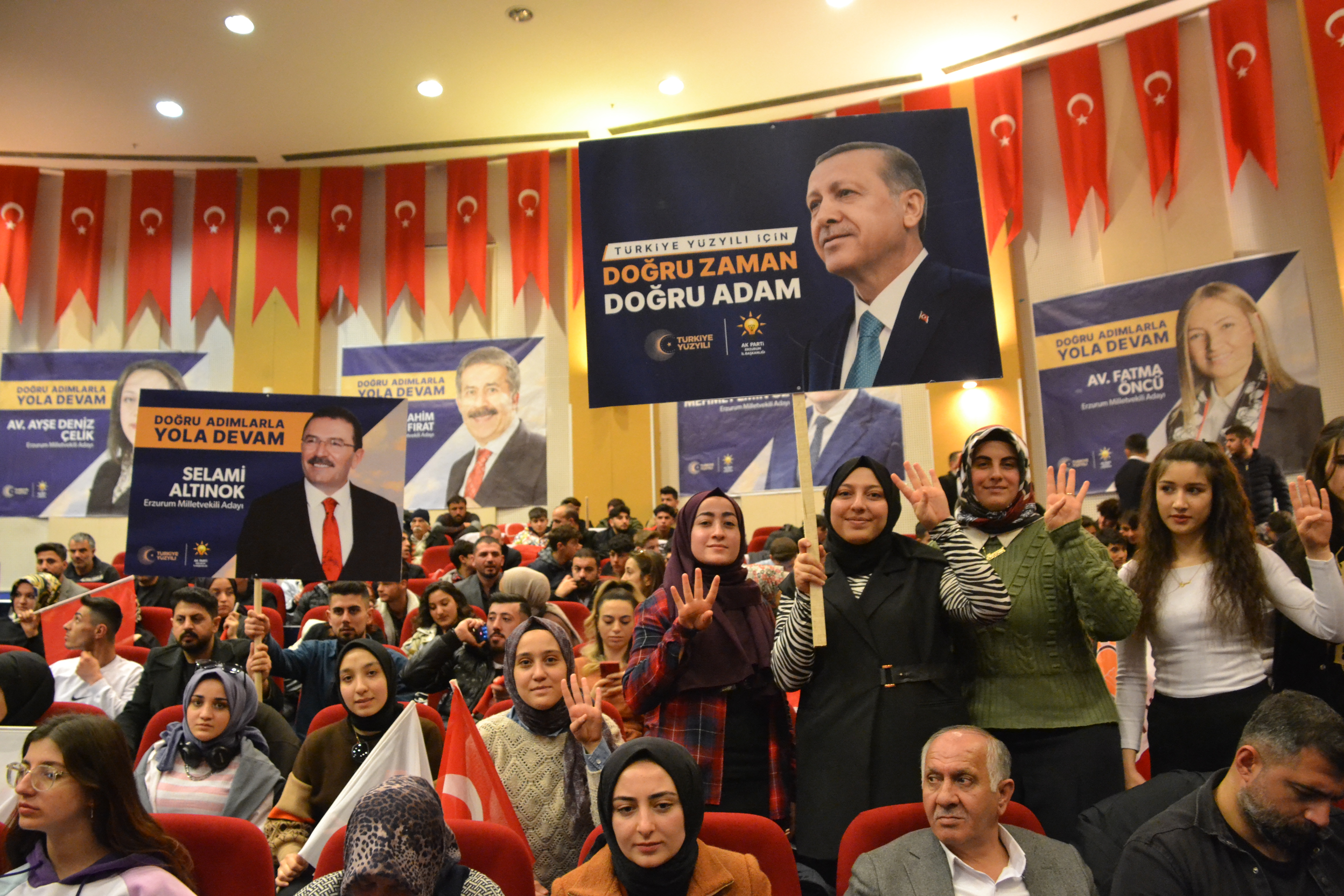 Toplantıda konuşan AK Parti Erzurum İl Başkanı İbrahim Küçükoğlu, “Teşkilatımızın tüm kademeleriyle bu seçimi inanç ve iradeyle zaferle sonuçlandıracağız. Birileri algı operasyonu yapmadan eser siyaseti yaparak bir partinin mensubu olmak gurur ve onur vericidir. Gazi meclisimizde milletimizin yüz akı olacak milletvekili adaylarımızla el ele, gönül gönüle, bizlerden beklenen hamlenin en iyisini yapmak için çalışacağız. Yorulmadan, yılmadan, usanmadan yolumuza bakıp yeni hedefleri hep birlikte inşa edeceğiz. Bizi yıkmak isteyen şer odaklarına asla fırsat vermeyeceğiz. Bu seçim partiler üstü bir seçimdir. Bu seçim hak ile batılın apaçık mücadelesinde saf belirleme seçimidir. Bu seçim milli manevi değerleri hiçe sayanlarla mücadele etme seçimidir. Bu seçim sadece bizim ve milletimizin değil dünya mazlumlarının umudu olacak bir seçimdir” dedi.