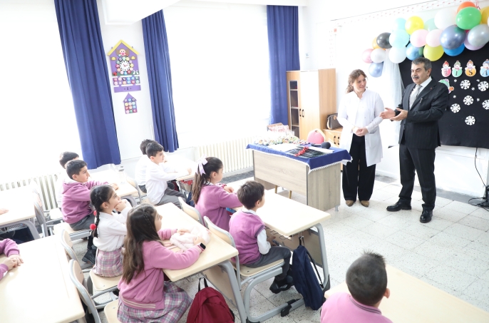 4/A sınıfında öğrenim gören Fatih ve Hatice Yılmaz çiftinin beşiz kızları Tenzile, Rabia, Havva, Berfin ve Hiranur’un karnelerini veren Bakan Tekin, öğrencilerle yakından ilgilendi.