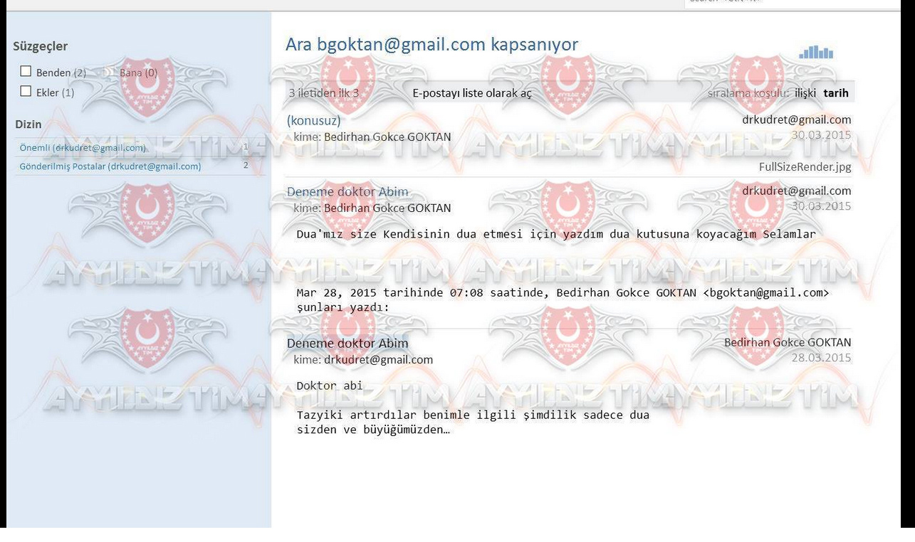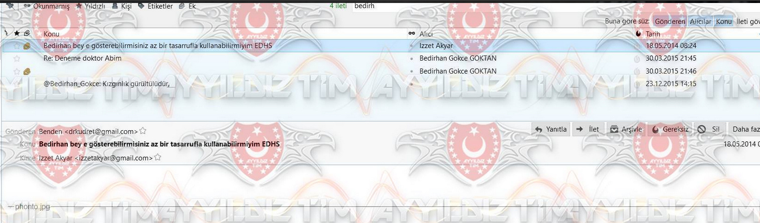 Ayyıldız Tim tarafından mail adresi hacklenen Bedirhan Gökçe'nin, teröristbaşı Fetullah Gülen'in doktoru Kudret ünal'la haberleştiği iddia edildi.