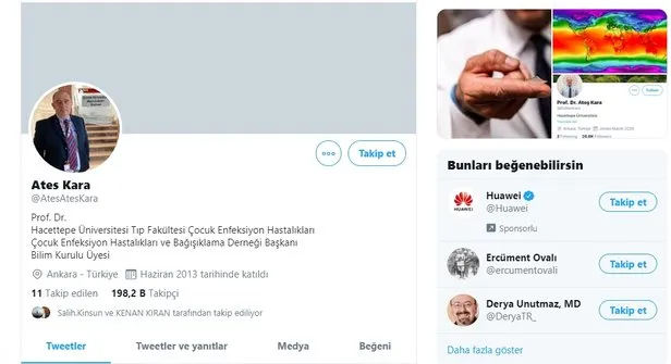 Prof. Dr. Ateş Kara'nın gerçek hesabı @AtesAtesKara, sahte olan ise @drateskara… Prof. Dr. Levent Yamanel'in Twitter'da hesabı bulunmuyor. Yamanel adına açılan @PYamanel hesabı sahte. Prof. Dr. Levent Akın adına açılan @LeventProf hesabı da sahte. Akın, sahte olan hesabı şikayet ettiğini söyledi.