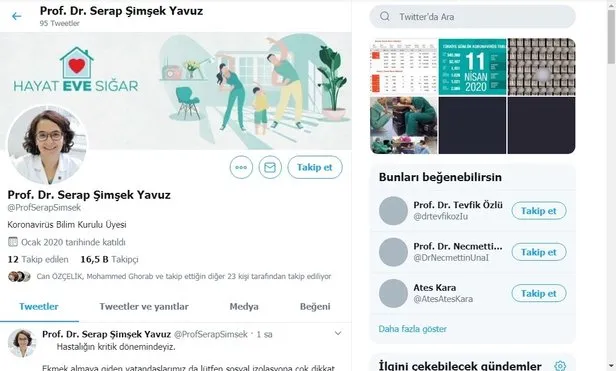 Sahte hesaptan sokağa çıkma yasağının başladığı 10 Nisan gecesi atılan "Uzun süre evde kalmaya hazır olun. Bu süreç biraz uzayabilir" mesajı, bir başka Bilim Kurulu üyesi Prof. Dr. Serap Şimşek Yavuz'un sahte hesabı tarafından da alıntılanıp paylaşıldı.