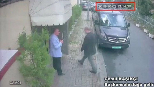 Fotoğrafta Cemal Kaşıkçı’nın konsolosluğa girdiği görülüyor. Kaşıkçı’nın görüldüğü fotoğraf karesinde giriş tarihi ve saati bilgisi de yer alıyor. Kaşıkçı’nın konsolosluğa giriş tarihi 2 Ekim saat 13:14 olduğu görülüyor. Cemal kaşıkçı aynı zamanda Washington Post yazarıydı.