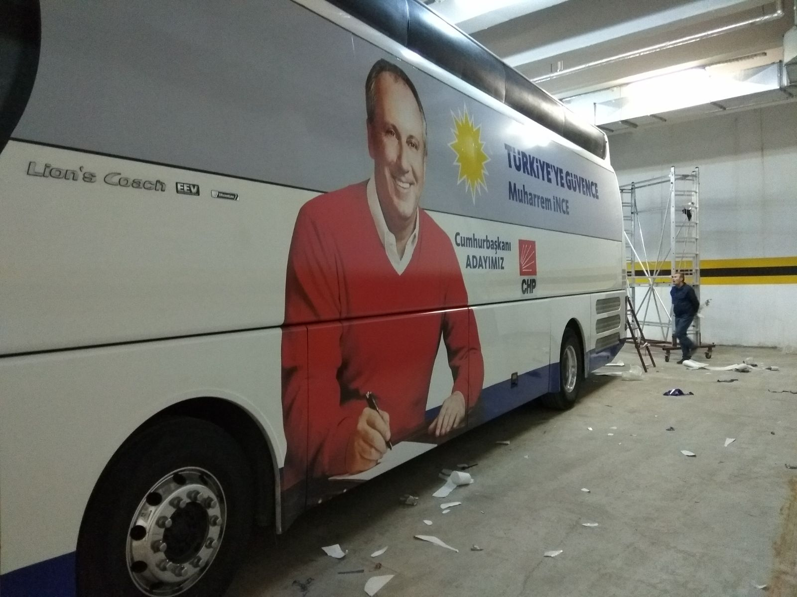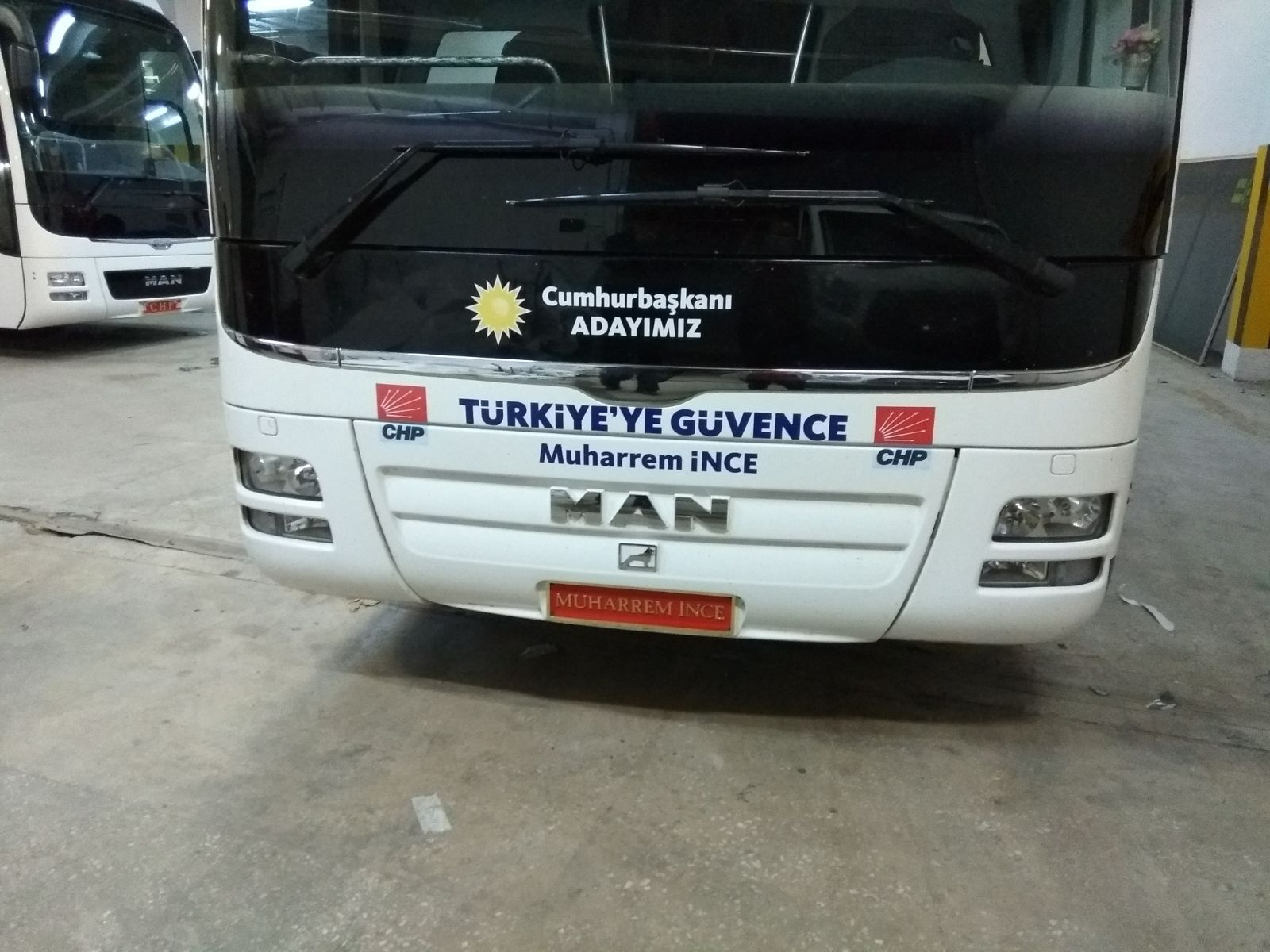 Muharrem İnce'nin ekibinin paylaştığı fotoğrafların yanı sıra Odatv, İnce için CHP'nin hazırlattığı otobüslerin fotoğraflarına ulaştı. CHP'nin otobüslerinde "Türkiye'ye güvence Muharrem İnce"sloganı yer aldı.