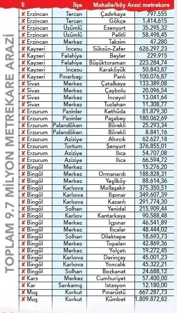 Çevre ve Şehircilik Bakanı Murat Kurum, Bingöl, Erzurum, Erzincan, Kars, Kayseri, Muş ve Sivas’ta araziler belirlendiğini, bu arazilerin çiftçiye, bedelsiz tahsis edileceğini açıkladı.