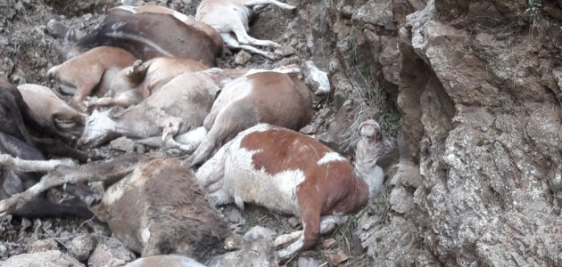 Bu sırada kayalıkların olduğu bir uçurumdan vadiye düşen yaklaşık 20 inek telef oldu. Halen canlı olduğu belirlenen bir ineğin kurtarılması için durum yetkililere bildirildi.