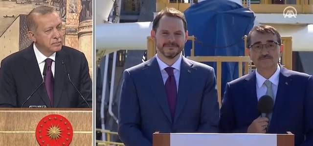 Cumhurbaşkanı Erdoğan, ''Türkiye tarihinin en büyük doğalgaz keşfini Karadeniz'de gerçekleştirdi. Fahih sondaj gemimiz 20 Temmuz'da başladığı Tuna-1 kuyusu sondajında 320 milyar metreküp doğalgaz rezervi keşfetmiş durumda. Hedefimiz 2023 yılında Karadeniz gazını milletimizin kuıllanıma sunmak'' dedi.