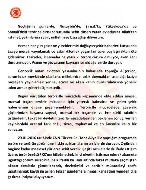 Cumhuriyet'in haberine göre, Gül’ün, açıklamaları nedeniyle Arınç ve çelik’e yönelik eleştirilerin çok yakışıksız olduğunu dile getirdiği,“Hepimiz aynı gemideyiz. Bu gemi su alırsa hepimiz zarar görürüz. Terör ve dış politikadaki ciddi gelişmeler varken, enerjimizi başka şeylere harcamak yanlış olur” dediği öne sürüldü. Ancak Erdoğan’ın da, sözkonusu açıklamaları eleştirdiği, “zamansız ve yakışıksız” bulduğu iddia edildi.