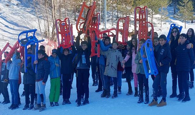 ETÜ Spor Bilimleri Fakültesi Beden Eğitimi Öğretmenliği son sınıf öğrencisi Vildan Güney'in 'kızak etkinliği' projesi kapsamında Palandöken'e götürdüğü 35 ortaokul öğrencisi doyasıya eğlendi.