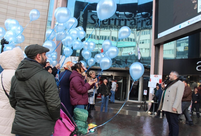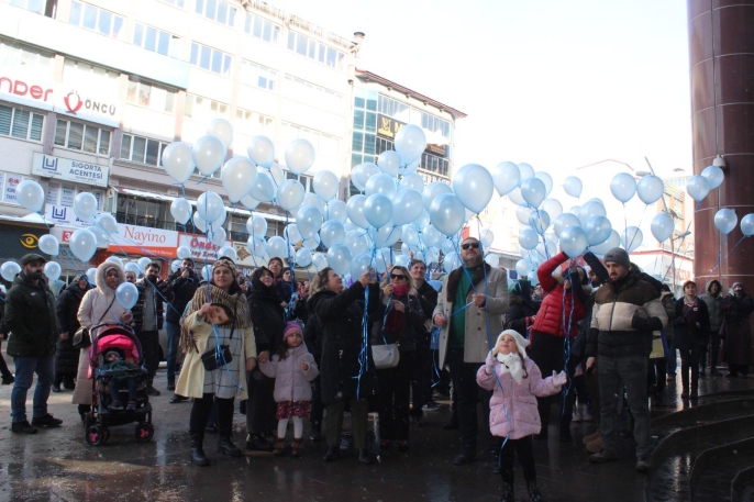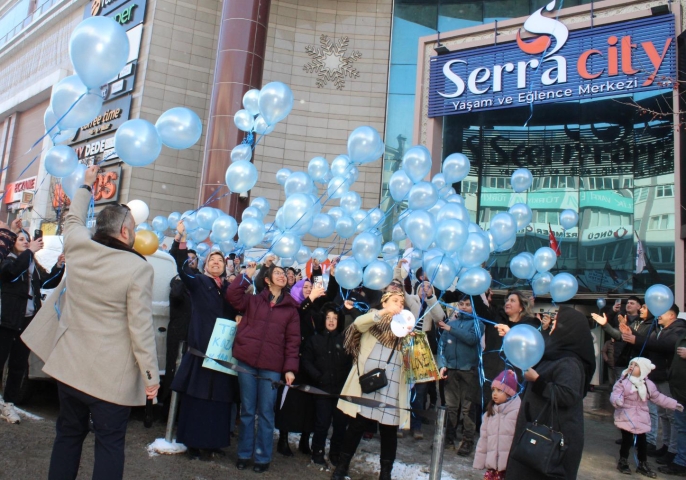Yapılan konuşmaların ardından binlerce mavi renkte balon, alkışlar eşliğinde Aydın ve Erzurum’da gökyüzüne bırakıldı.