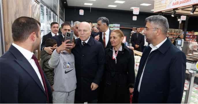 Bu proje ile aracılar ortadan kalkıyor, yerli üretici kazanıyor ve vatandaşımız uygun fiyata alışveriş yapıyor” dedi. Genel Sekreter Zafer Aynalı da, “Mübarek cuma gününde hayırlı bir hizmetle daha hemşehrilerimizle buluşmanın mutluluğunu yaşıyoruz. Başta Erzurum Büyükşehir Belediye Başkanımız Mehmet Sekmen Bey olmak üzere bütün mesai arkadaşlarıma teşekkür ediyorum” diye konuştu. Yakutiye Belediye Başkanı Mahmut Uçar da, “Büyükşehrimizin muazzam yatırımlarından birine daha şahit oluyoruz. Bu vizyoner çalışmalarından dolayı, vatandaşlarımızın cebinin hararetini düşürecek olan kaliteli ve ucuzluğun adresi Halk Pazarı projesini hayata geçiren Başkanımız Mehmet Sekmen ağabeyimize şükranlarımı sunuyorum” şeklinde konuştu.