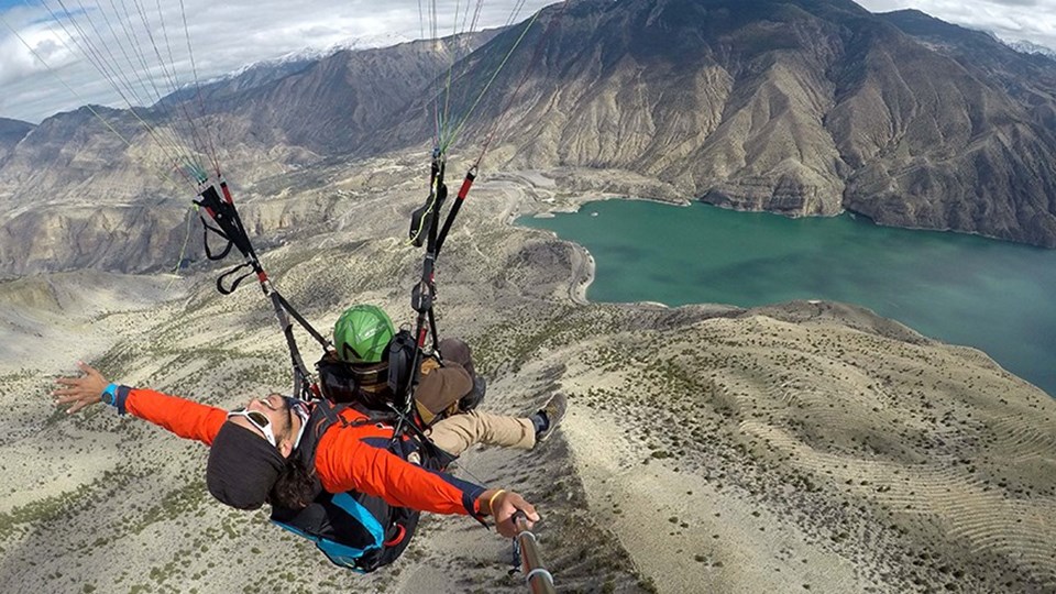 Tortum Gölü'nü çevreleyen sıradağlarda atlama alanı belirleyen ekstrem sporcuları, 2 bin 300 metre yükseklikte isteyenlere atlayış yapmayı öğretirken yörenin turizm potansiyeline de katkı sağlıyor.