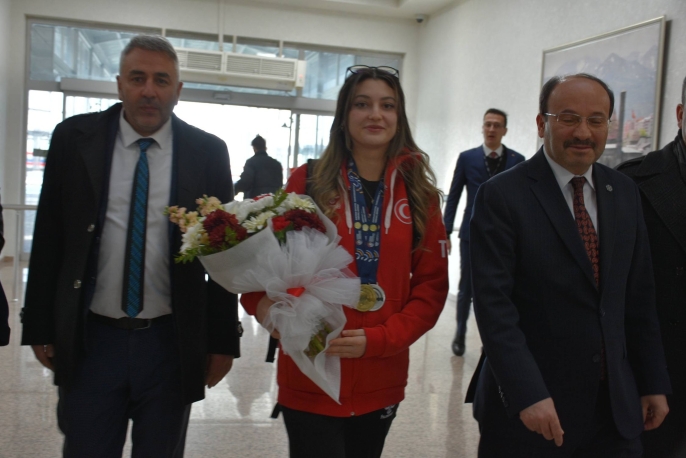 Başarılı sporcu, kendisini karşılamaya gelenlerle hatıra fotoğrafı çektirirken Erzurumlu sporseverler de Avrupa şampiyonunu alkışlarla tebrik etti.