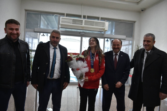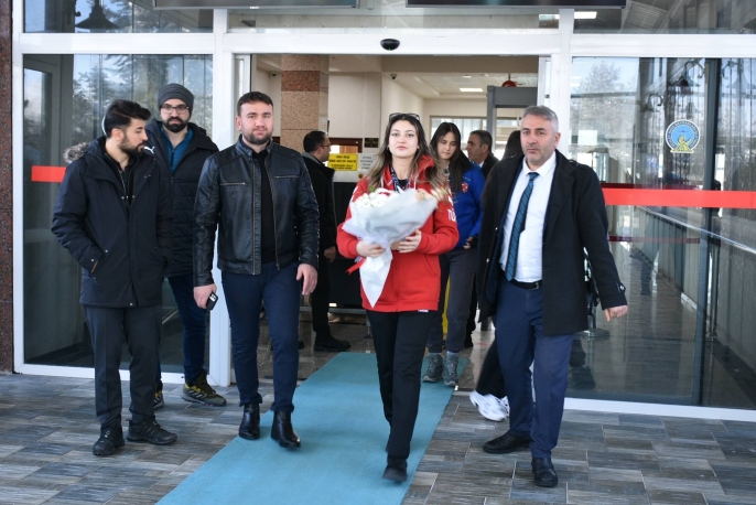 Avrupa şampiyonu sporcu için Erzurum Havalimanı’nda özel bir karşılama programı düzenlendi. Erzurum Teknik Üniversitesi (ETÜ) Sağlık Bilimleri Enstitüsü yüksek lisans öğrencisi olan Damla Köse’yi havalimanında üniversite yönetimi, spor camiası ve çok sayıda sporcu çiçeklerle karşıladı.