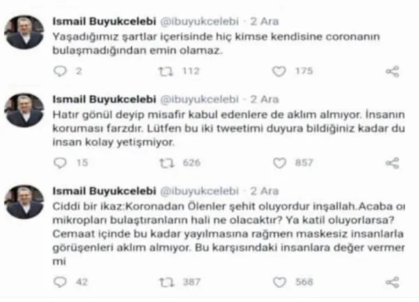 FETÖ elebaşı Gülen'in koronavirüse yakalandığı iddiaları, örgüt üyelerinin yazışmalarında ortaya atıldı. FETÖ'cüleri izleyen Emniyet birimleri, hem FETÖ'cü hesaplar hem de Amerika üzerinden araştırmaya girişti. FETÖ'cü hesaplar koronavirüsün Gülen'e çok yakın isimlerden bulaştığı iddiasını paylaştı. FETÖ'nün tepe yöneticilerinden İsmail Büyükçelebi, Twitter hesabından, "Yaşadığımız şartlar içerisinde hiç kimse kendisine bulaşmadığından emin olamaz. Hatır gönül deyip misafir kabul edenleri de aklım almıyor. Ciddi bir ikaz... Cemaat içerisinde bu kadar yayılmasına rağmen maskesiz insanlarla görüşenleri aklım almıyor" diye yazdı.