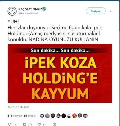 'Kaç Saat Oldu' isimli hesap 2015 yılından bu yana Fetullahçı Terör Örgütü'nün propagandasını yapıyor. Hesabın bugün itibariyle yaklaşık 750 bin takipçisi bulunuyor. FETÖ'cü hesap Fuat Avni'den sonra örgütün en önemli propaganda sosyal medya hesabıydı.