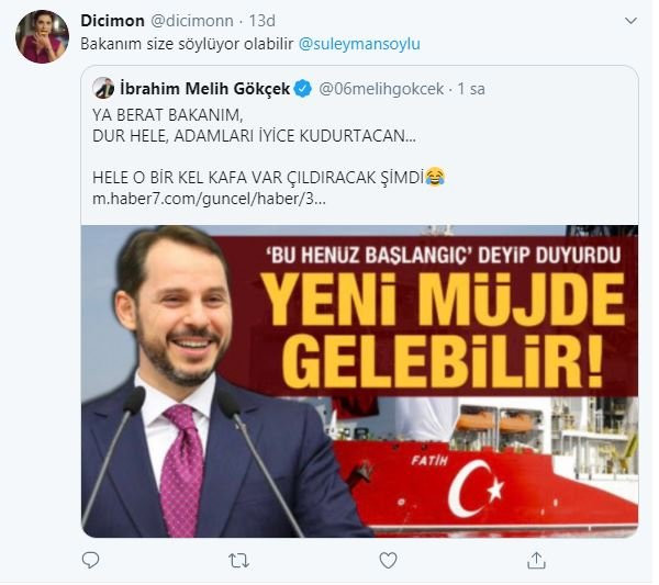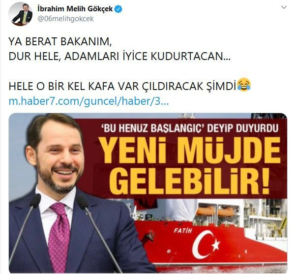 Gökçeki Berat Albayrak'ı öven bir haberi kişisel Twitter hesabından paylaşarak, YA BERAT BAKANIM,