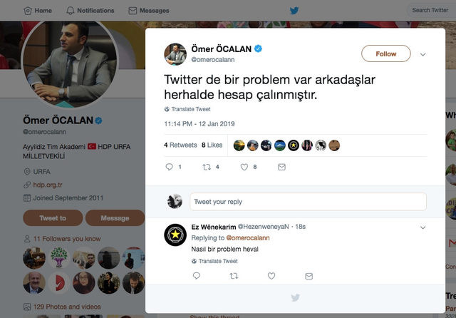 Ömer Öcalan'ın hesabından daha sonra bir paylaşım daha yapıldı. Yapılan son paylaşımda "Twitter'da bir problem var arkadaşlar herhalde hesap çalınmıştır" ifadeleri kullanıldı.