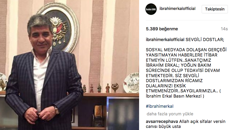 Sosyal medyada bazı sahte hesaplardan İbrahim Erkal öldü şeklindeki haberler ise ailesini kahretti. İbrahim Erkal'ın eşi Filiz Akgün'ün amcası olan Büyükçekmece Belediye Başkanı Hasan Akgün bu haberlere tepki gösterdi. İbrahim Erkal'ın son durumu da açıklayan Hasan Akgün şunları söyledi : "72 saati bekleyeceğiz. Yapılması gereken müdahale tıbbı olarak yapıldı. Herhangi bir değişiklik yok. Bunlar günahtır, yazıktır, onun da ailesi var".