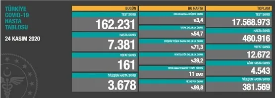 Sağlık Bakanı Fahrettin Koca 25 Kasım corona virüsü hasta ve vefat sayılarını açıkladı! İşte 25 Kasım koronavirüs tablosu