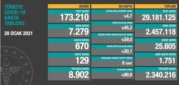 Sağlık Bakanlığı açıkladı! İşte 28 Ocak Türkiye koronavirüs vaka sayısı verileri ve tablodaki son durum